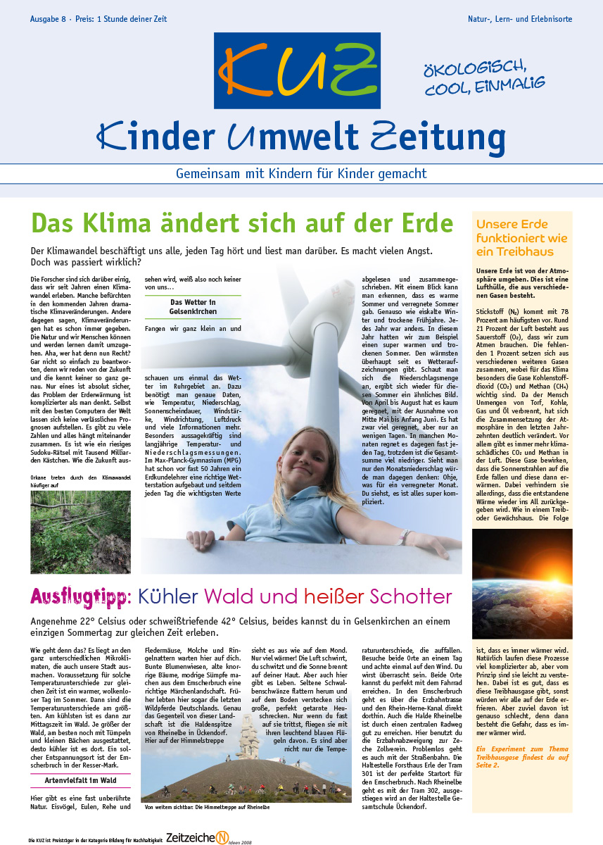 Godau, Michael / Cub, Nicole / Rybarski, Werner / Wenzel, Thomas (2008): KinderUmweltZeitung. Ausgabe 2/2008. Hrsg.: Stadt Gelsenkirchen, Der Oberbürgermeister, Referat Umwelt und aGEnda 21.