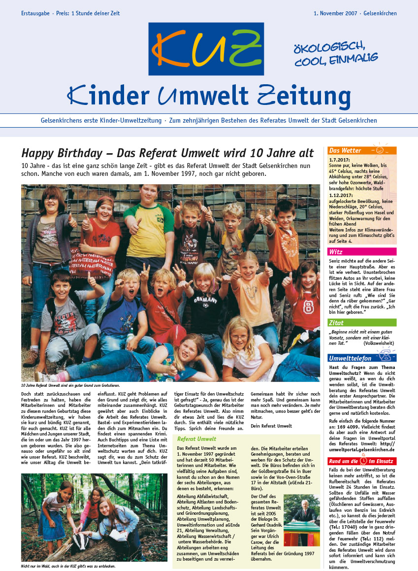 Godau, Michael / Cub, Nicole / Kruppa, Kay / Ruppel, Gerhard / Schäble, Frank / Schulik, Annette / Trenti, Ilona / Wenzel, Thomas / Zumbusch, Sabine (2007): KinderUmweltZeitung. Ausgabe 1/2007. Hrsg.: Stadt Gelsenkirchen, Der Oberbürgermeister, Referat Umwelt.