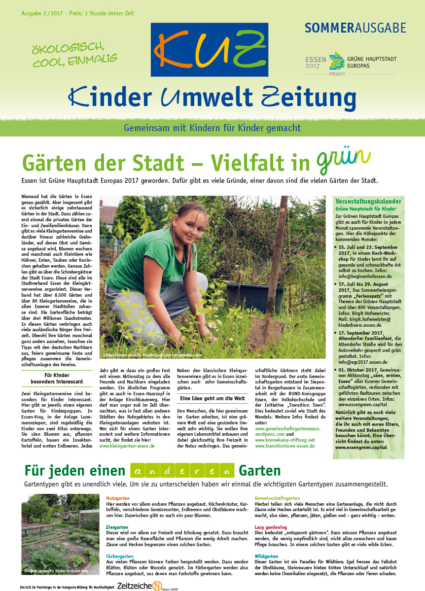 Zur Ausgabe 2/2017 der KinderUmweltZeitung, Grüne Hauptstadt Europas