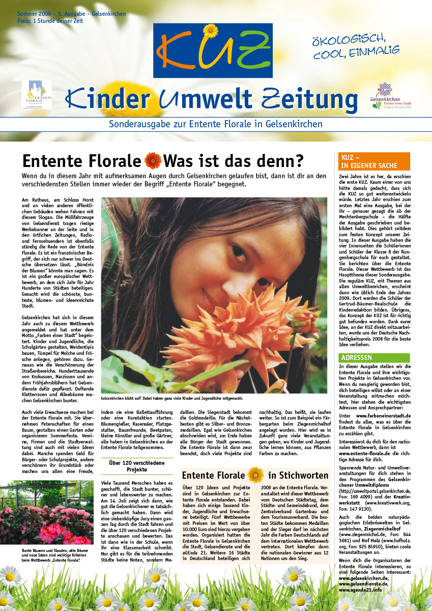 Godau, Michael / Cub, Nicole / Rybarski, Werner / Wenzel, Thomas (2009): KinderUmweltZeitung. Ausgabe 3/2009. Hrsg.: Stadt Gelsenkirchen, Der Oberbürgermeister, Referat Umwelt und aGEnda 21.